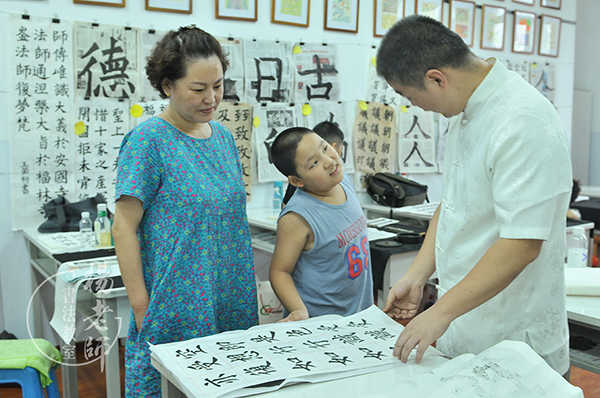 徐女士為人謙恭,擅于總結方法,珍惜老師每一次示范的機會。徐女士尊師重道、踏實勤奮、精益求精的品格為其子樹立了良好的精神風范。 在良好家風的影響下,9歲的牛牛和母親徐女士同在書法教室學習。牛牛聰明好問,思維敏捷。心地善良的他樂于與人分享學習的樂趣。抗挫力有待加強,希望逐漸深入的學習,能幫助牛牛心性堅定,愈挫愈勇。