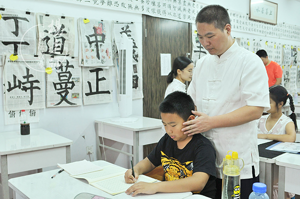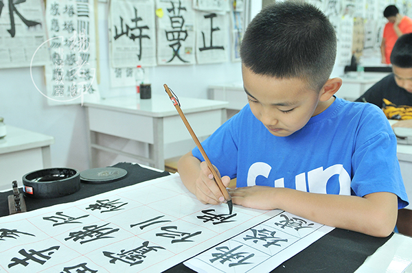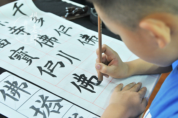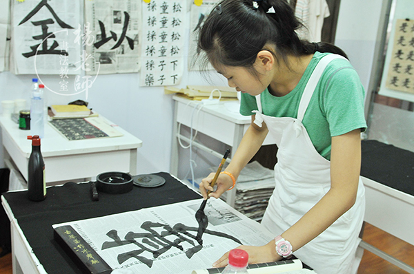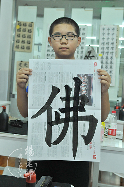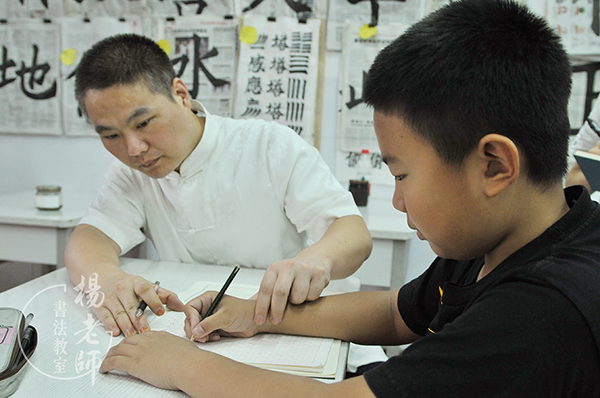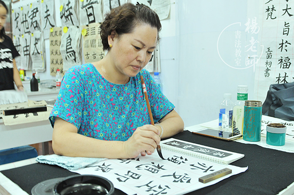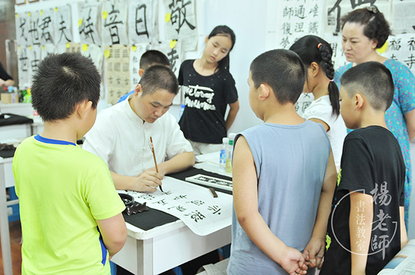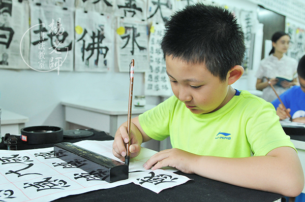 推開「楊老師書法教室」忠信班的木門,一陣清馨的墨香迎面而來,同學們正專心致志地習字。