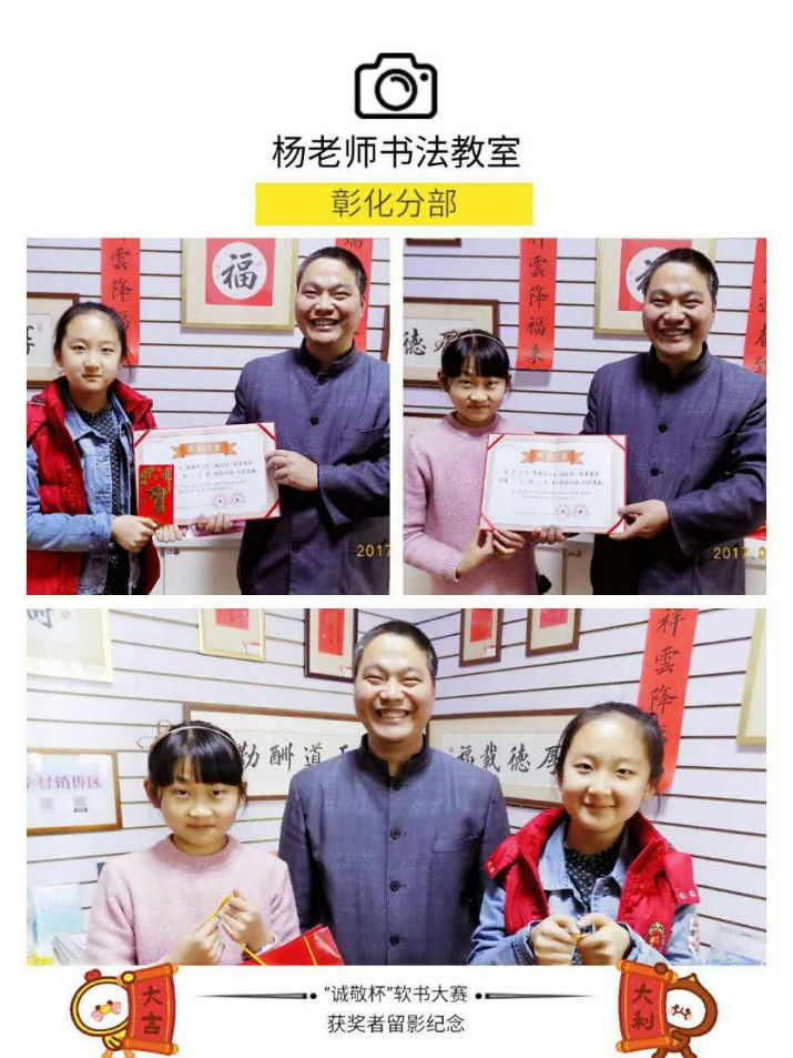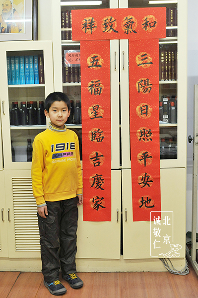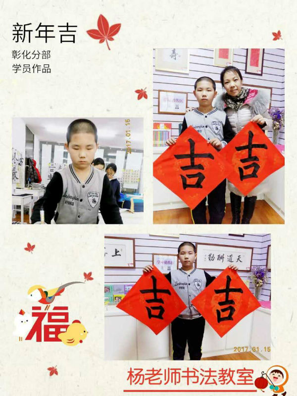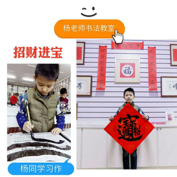 祥和喜氣的「福」與「壽」,活潑稚氣的「吉祥」,還有大哥哥們清正端秀的對聯,把楊老師書法帶回家里,貼在門上,暖在心里。感謝所有老師的真誠付出,感謝同學們的精勤努力,感謝所有家長們的悉心配合,楊老師書法教室以及所有的同學們祝福大家新的一年里,萬事如意,吉慶安康。