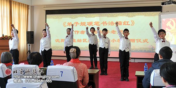 在航空實驗小學(xué)捐贈《弟子規(guī)硬筆描紅》儀式上,全體同學(xué)誦讀《弟子規(guī)》,臺上臺下氣氛熱烈,感染每一位客人。