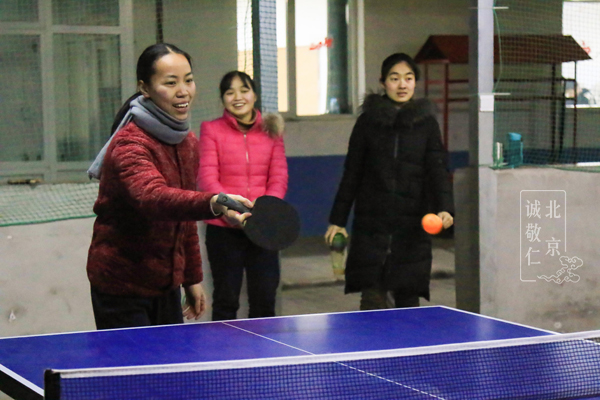 課間,楊老師一有空閑就跟同學們打乒乓球,簡單純粹,以球結緣。