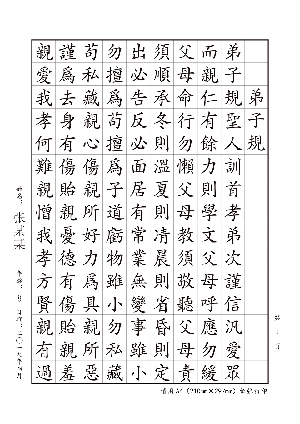 《弟子規》硬筆書法字帖(北京誠敬仁微店 、 北京誠敬仁淘寶均有售)