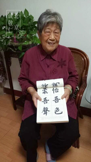 ▲這位老媽媽已經(jīng)90歲了,一本描紅完成,對他們來說太珍貴,舍不得寄回來,就用照片分享他們的快樂。