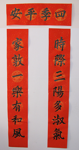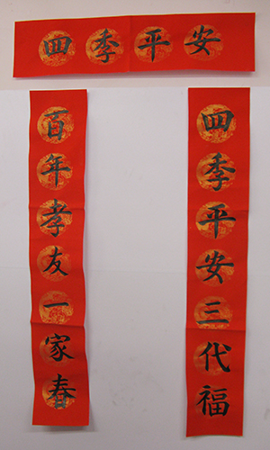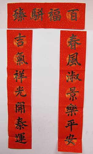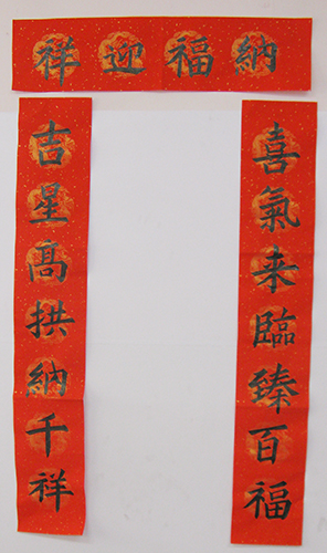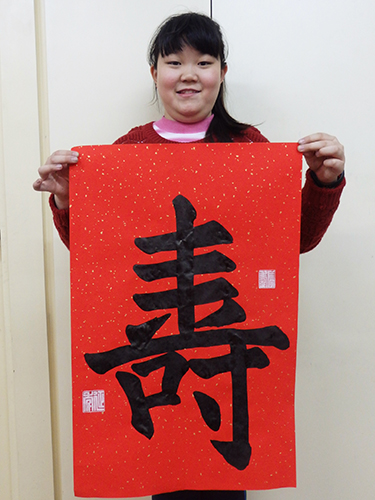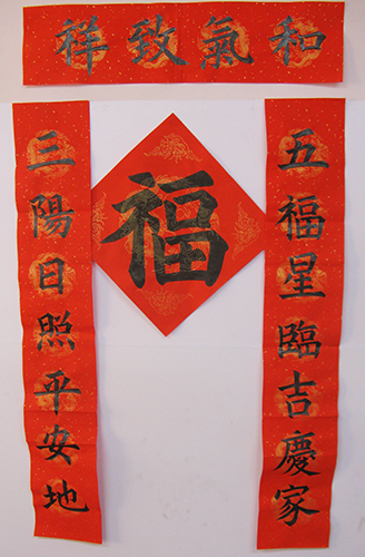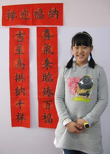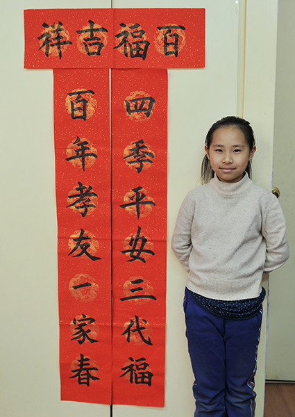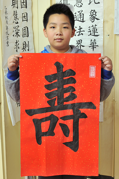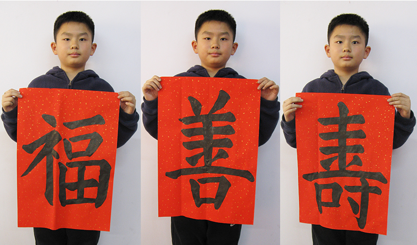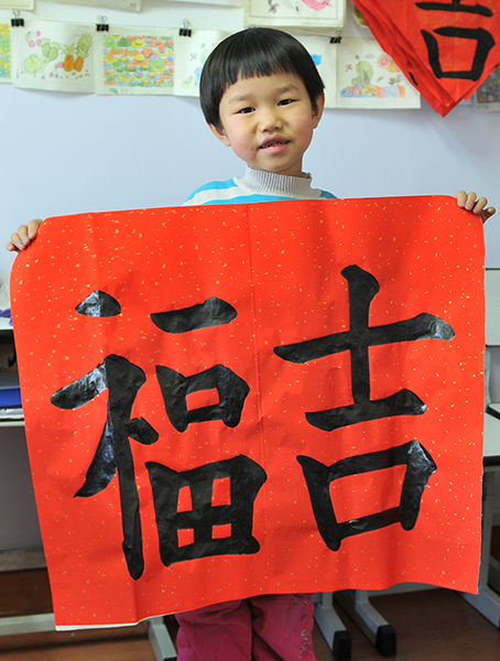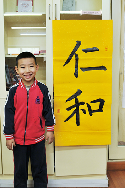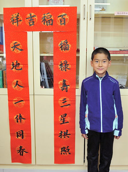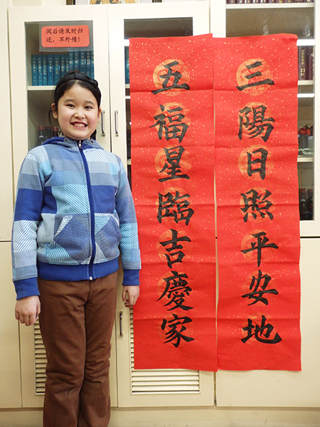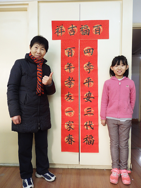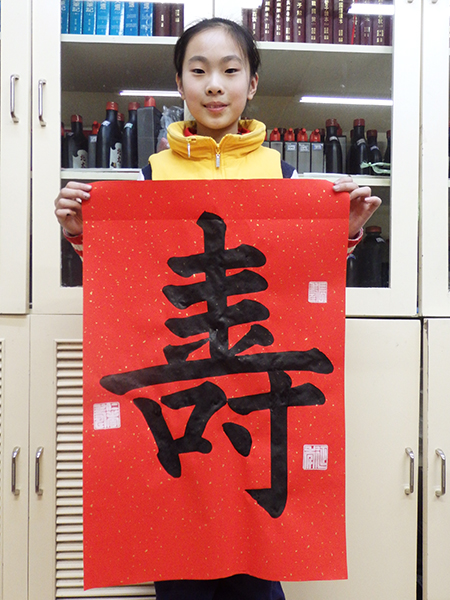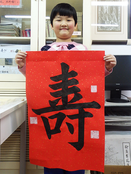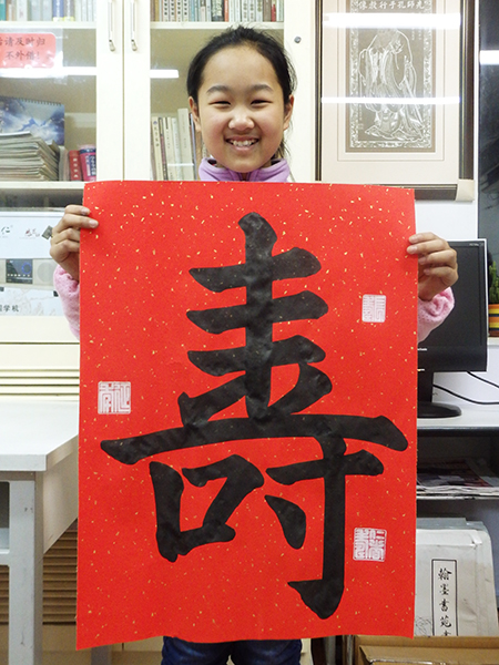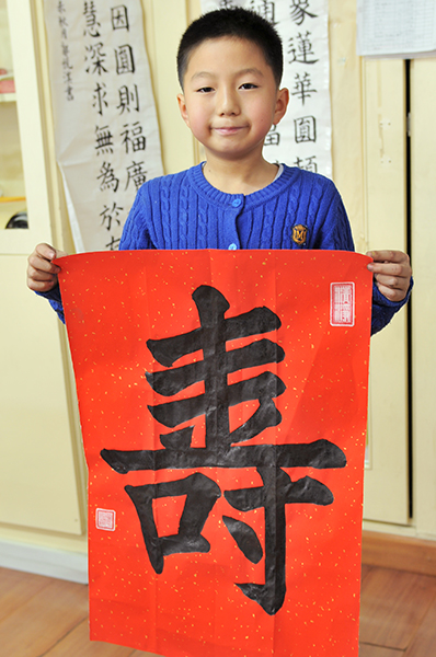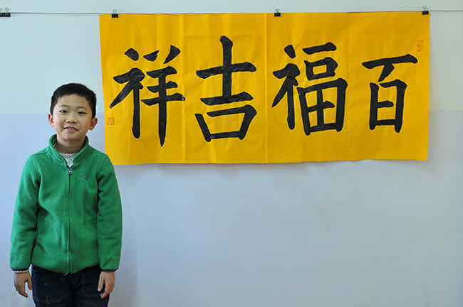 4. 充分利用寒暑假,因平時大部分孩子就一周一次課,平時在家又很少有時間練習,所以寒暑假集中學習能大幅度幫助孩子提升,同時也易于激發起孩子學習的激情。比如鄭凱元同學,石昊健同學,劉恬源同學正是利用今年寒假,集中時間來練習小字對聯的最好證明,他們不僅為自己寫,還寫了送親朋好友。另外楊一丁同學,暑期有參加過兩次夏令營,寒假今天越堅持不斷到書法教室上課,還記得他第一次夏令營期間絕大部分時間一直寫水寫布,很少用墨汁,因他會把墨汁弄得到處是,需要花很長時間來清理,用過的報紙總是凌亂的,來書法教室一年后有了大幅度的提升,現在報紙自己可以整理得很整齊,用墨汁也比較文雅了,而且還喜愛上了書法,今年寫了漂亮的大「福」字送給來北京看他的奶奶作為禮物。陳湘旭同學平時來上課的時間差不多兩周一次,但她每年暑假都會去通州學習,所以她的提升得益于此,其他如郭博文,邢萬里等一些學員也都又參加過暑期的夏令營,無論是書法還是個人自理能力,品德都有助益,此不足一而述了。