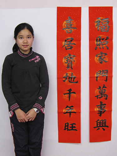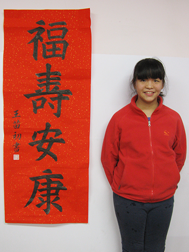 周同學今年17歲,上高一,是馬來西亞華裔。她是一個非常孝順的孩子,在學習之余,懂得體貼照顧媽媽,減輕媽媽的工作負擔。2012年12月開始學習書法,兩年基本功扎根之后,進步更快。2015年2月參加北京市書法節比賽,獲得提名獎,2016年元旦參加北京誠敬仁公司書法比賽決賽,獲得三等獎。
