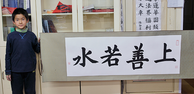 3. 學習貴在堅持有恒,持續的學習猶如燒開水,一直不斷的加熱,水溫總是在上升,水燒開就容易,若是斷斷續續,水是很難燒的開的。同樣的課時內,在書法教室學習一天者比學習半天者進步要大,因為學習一天者,上午一般都是在鞏固基本功,下午才學新的內容,基本功也扎實,接受新的內容也較快。在保證孩子們一周一次的學習時間外,在家的練習也是非常重要的,進步比較大的孩子他們在家都有堅持練習,而且態度認真經常給老師交作業,老師批閱后,孩子們會參照老師的批閱來強化練習,如此孩子的進步自然會大,在此我要特別舉個例子,嚴子恒同學每天堅持在家最少半個小時,從不間斷,相信誠敬班微信群的家長們有目共睹,所以再同年齡段的孩子中,他的進步比較顯著。