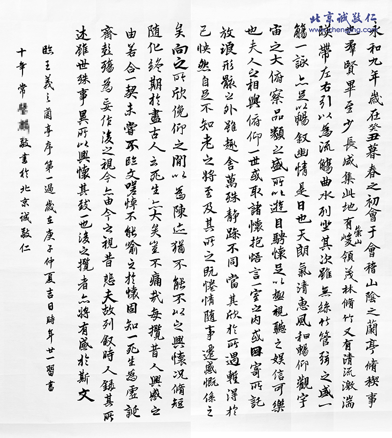 臨 王羲之《蘭亭序》第一過(注:第一遍) 常同學習作 21歲 習書十年